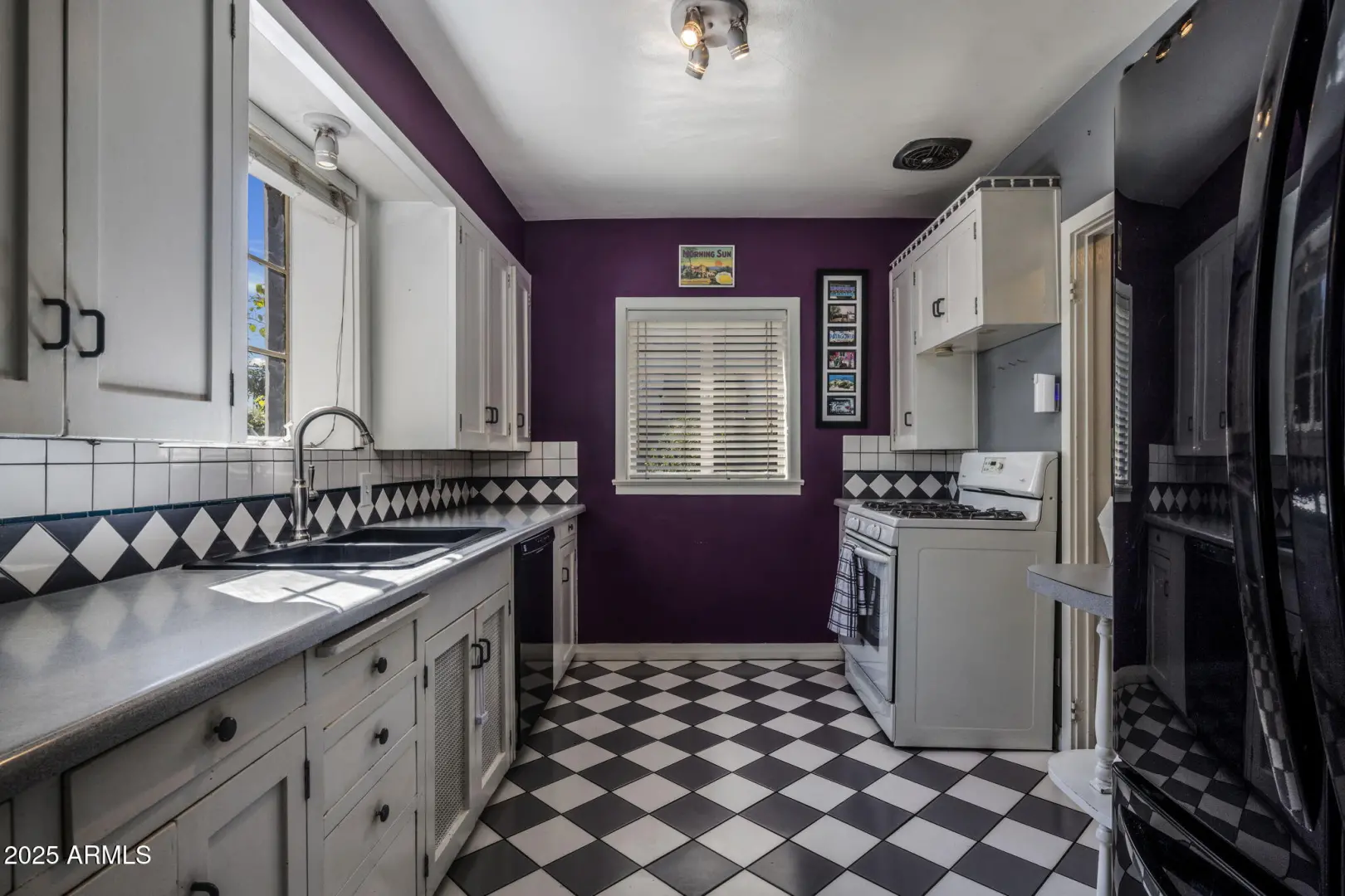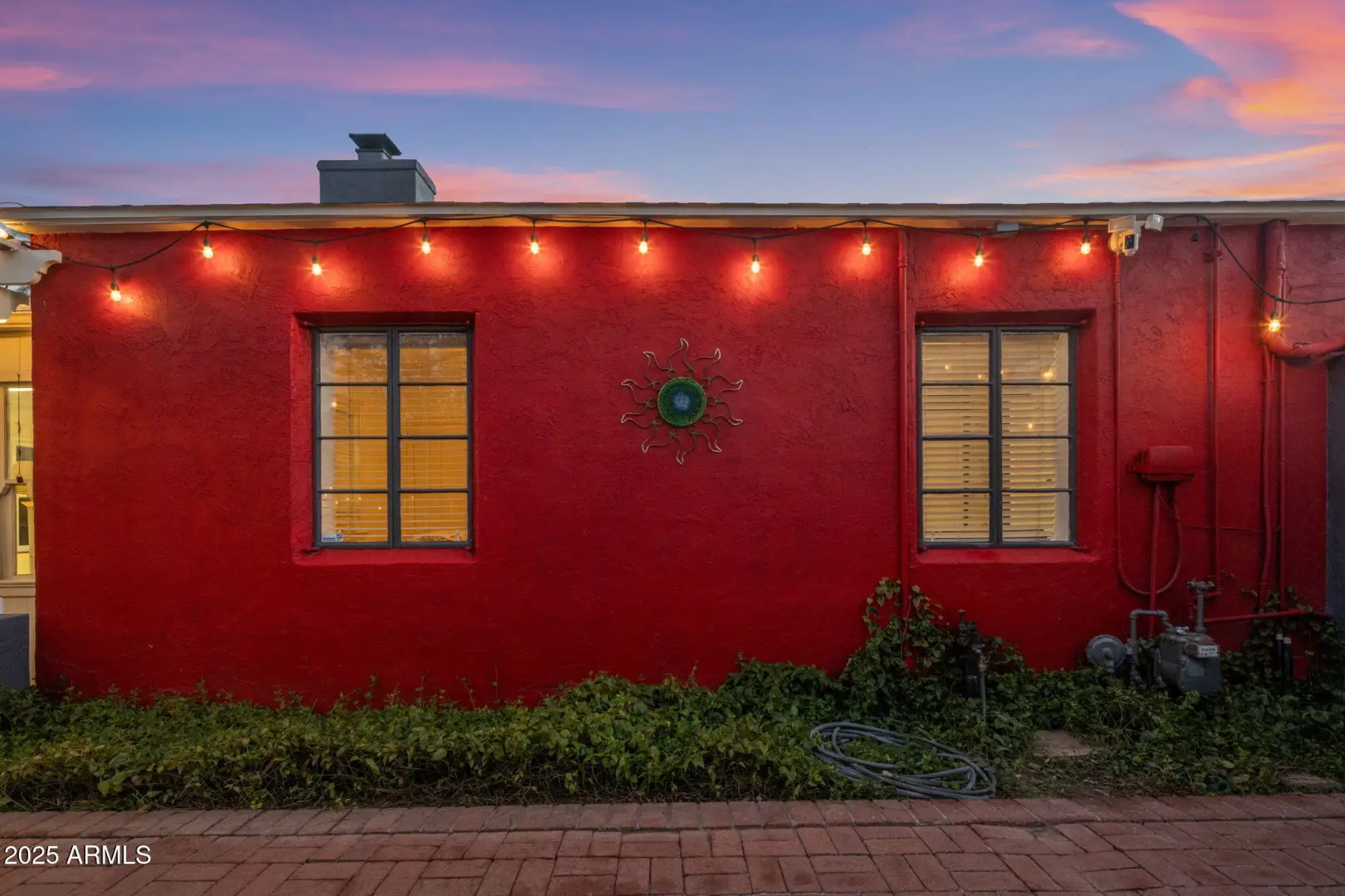 Welcome to this beautifully maintained, adobe brick construction, Monterey Revival-style home located in the one and only Willo Historic District! This timeless home blends classic architectural details with thoughtful updates, offering warmth, vintage character, and inviting spaces throughout. From the moment you arrive, you're welcomed by curb appeal that includes lush water-wise yard landscaping and a charming front porch. Step inside to discover a spacious main living room featuring vaulted ceilings, Saltillo tile flooring, a gas fireplace, and expansive windows that fill the room with natural light. A graceful arched entry leads into the dining room, with a generous space for a large table—ideal for entertaining. The kitchen exudes vintage charm with checkerboard tile flooring,