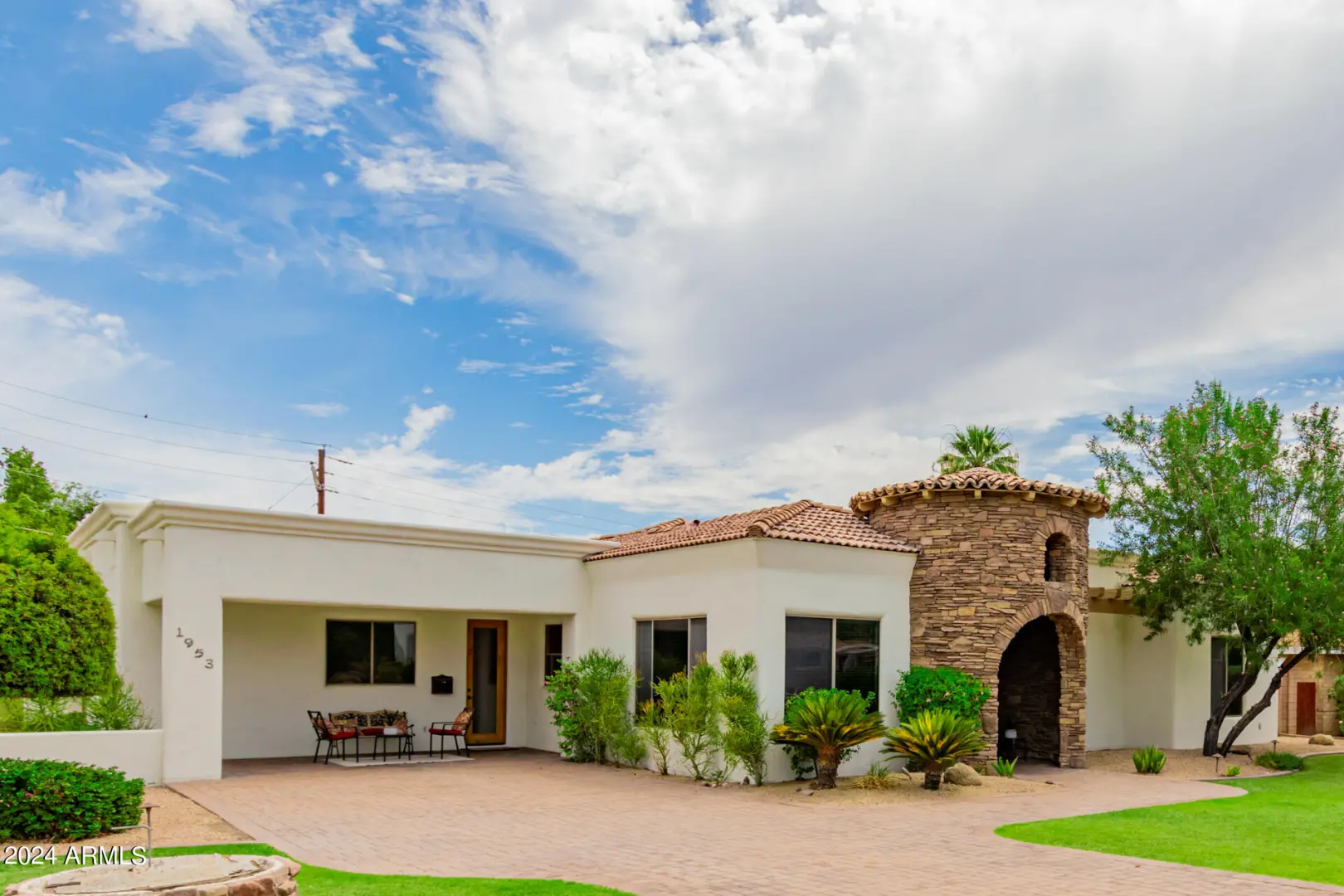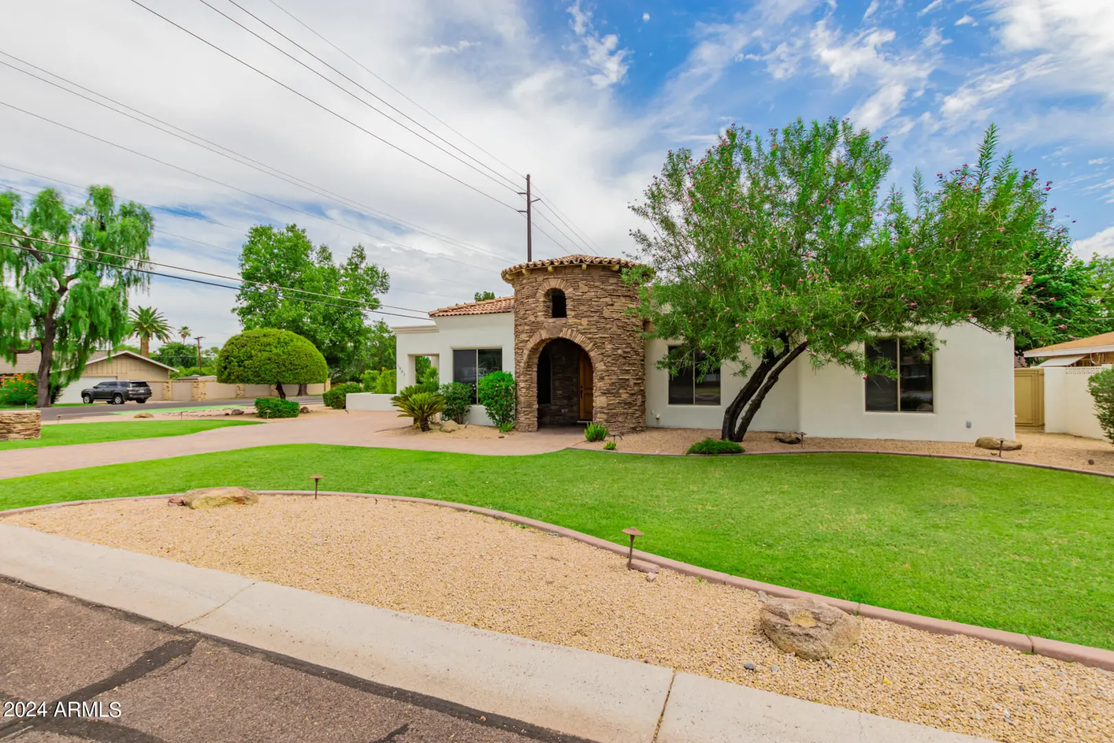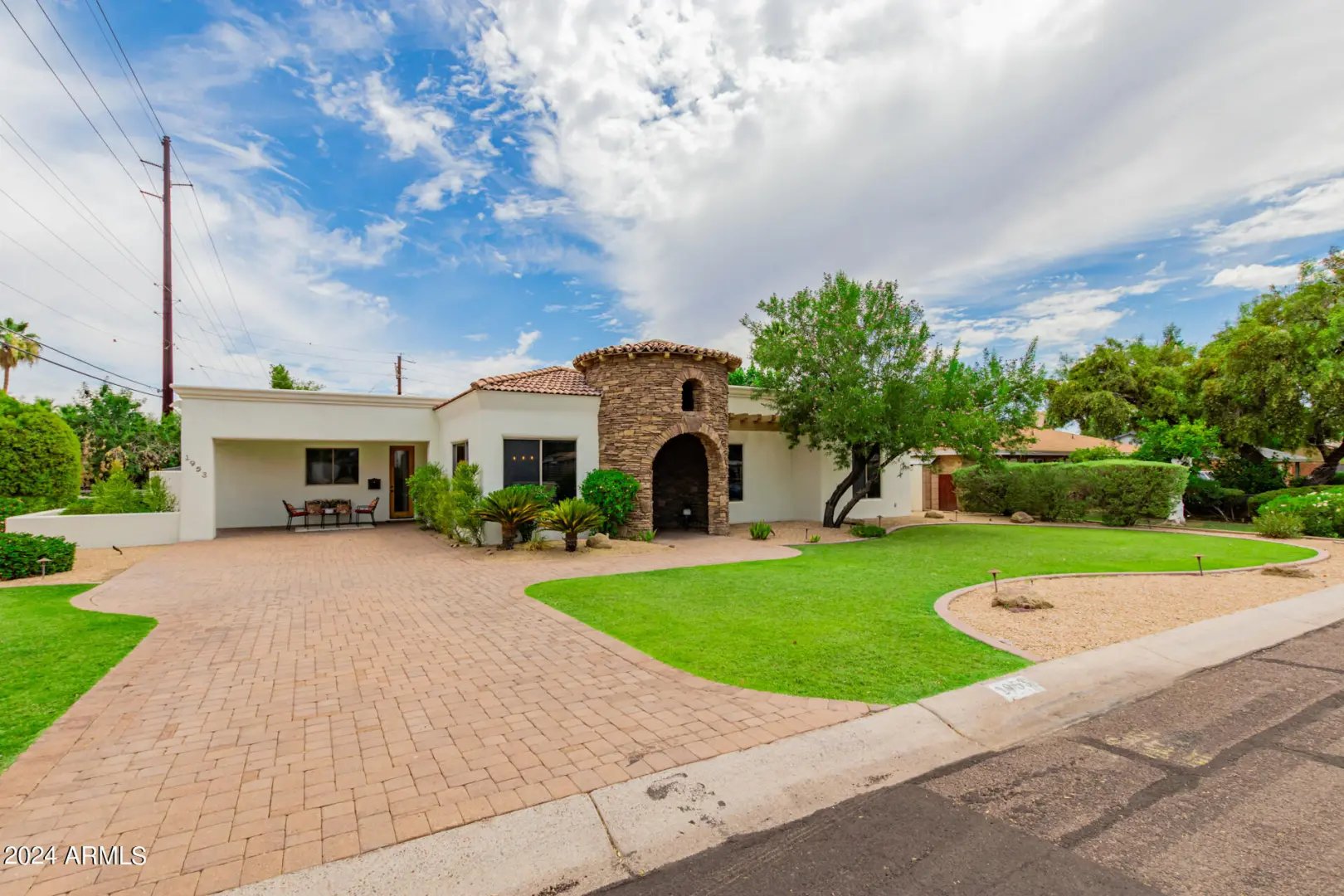 Located in Wrigley Terrace, this single level home will not last long! Close to Biltmore and within Madison Elementary school District. 4 beds, 2.5 baths. Great room concept features a gourmet kitchen with Wolf gas range, stainless steel appliances, granite counters, and kitchen island. Living room has dining area and fireplace, and oversized sliding glass doors to backyard. Primary bedroom features separate shower, jacuzzi tub, double sinks and a walk-in closet. Three large guest rooms have ample closet space. Hall bath with shower. Fourth bedroom has an ensuite half bath. Private dining room may also be used as a spacious office. Backyard has a built-in bbq, grassy area and lots of covered patio space. Large garage with storage and 2 car carport.