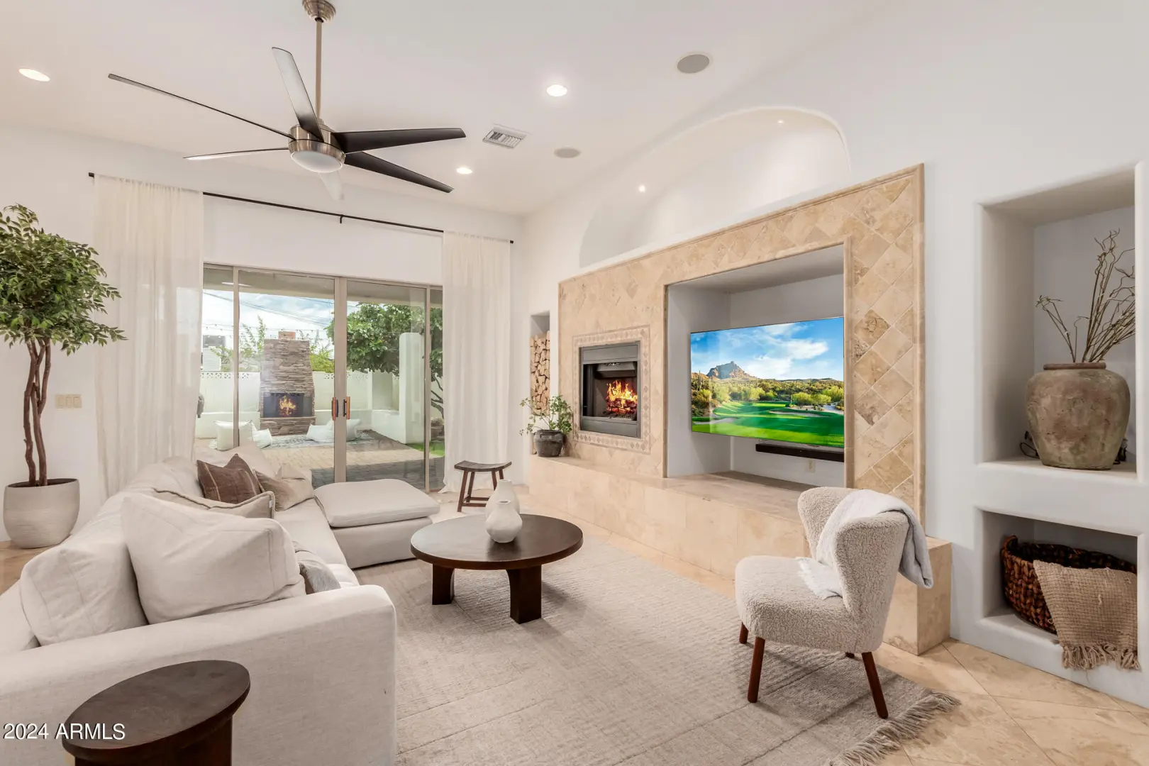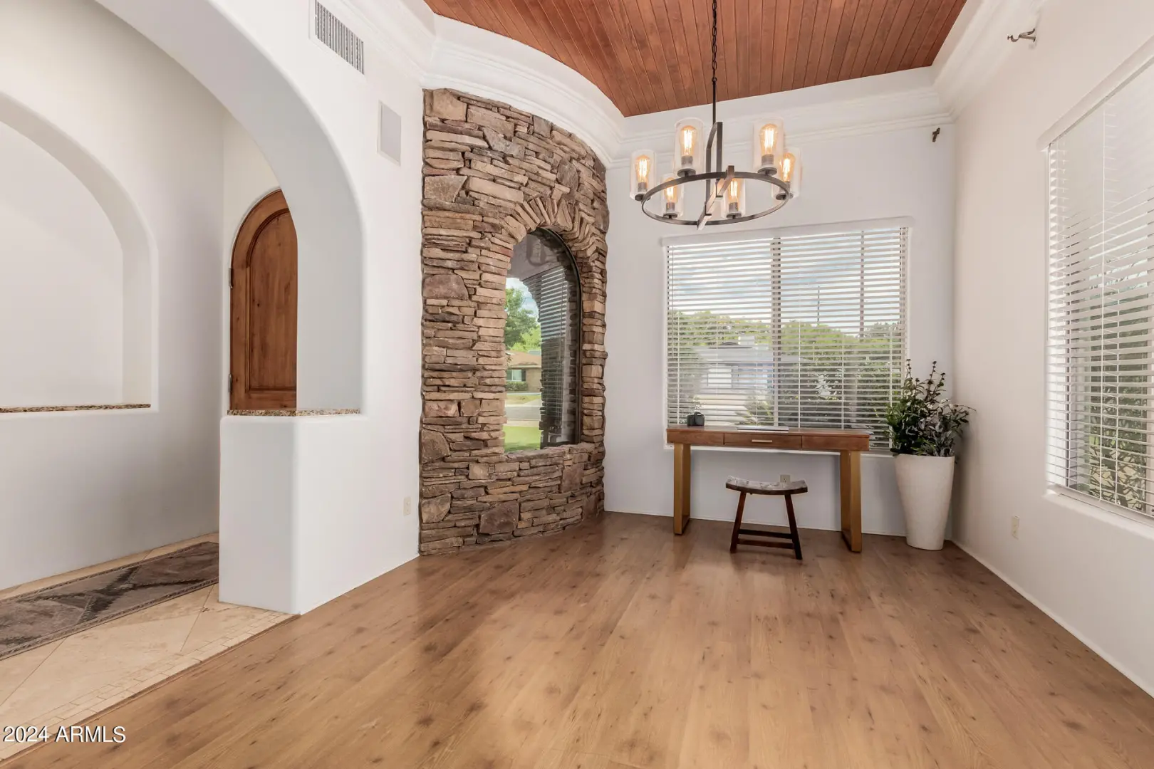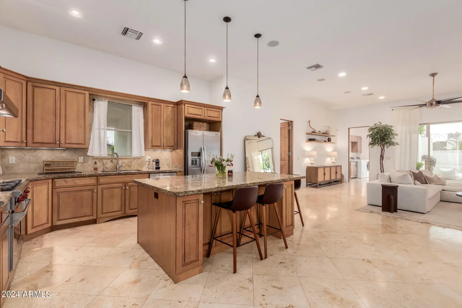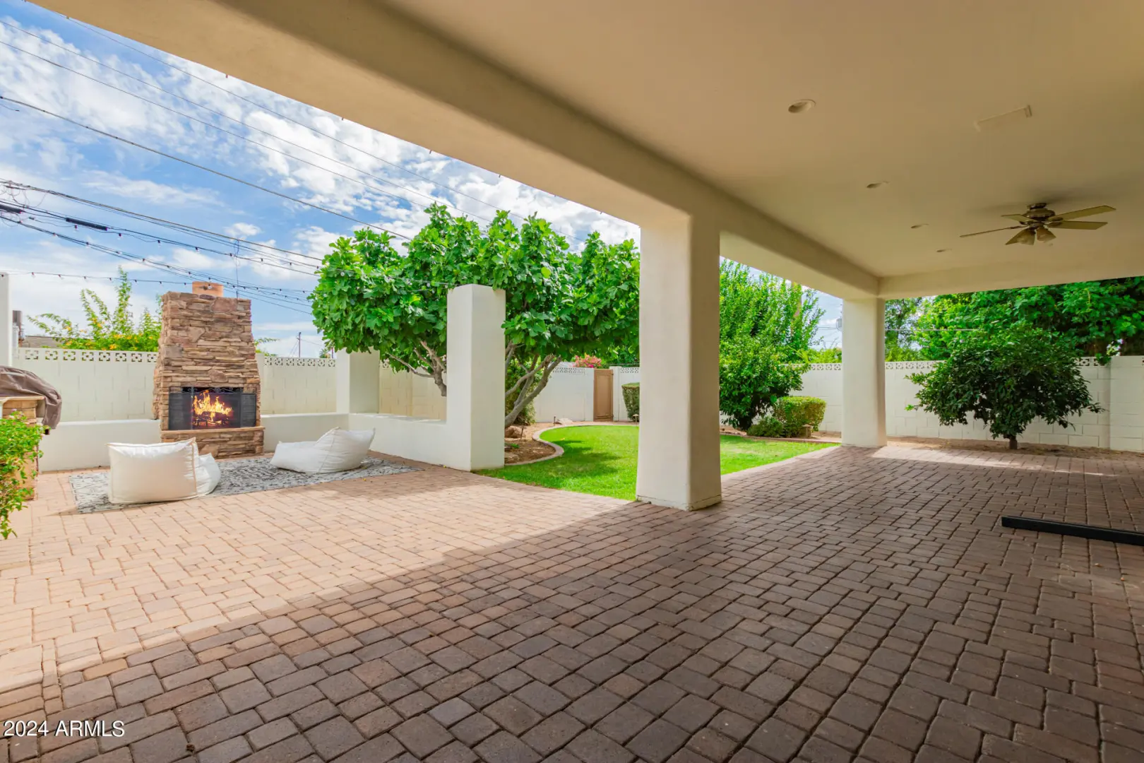 Located in Wrigley Terrace, this single level home will not last long! Close to Biltmore and within Madison Elementary school District. 4 beds, 2.5 baths. Great room concept features a gourmet kitchen with Wolf gas range, stainless steel appliances, granite counters, and kitchen island. Living room has dining area and fireplace, and oversized sliding glass doors to backyard. Primary bedroom features separate shower, jacuzzi tub, double sinks and a walk-in closet. Three large guest rooms have ample closet space. Hall bath with shower. Fourth bedroom has an ensuite half bath. Private dining room may also be used as a spacious office. Backyard has a built-in bbq, grassy area and lots of covered patio space. Large garage with storage and 2 car carport.