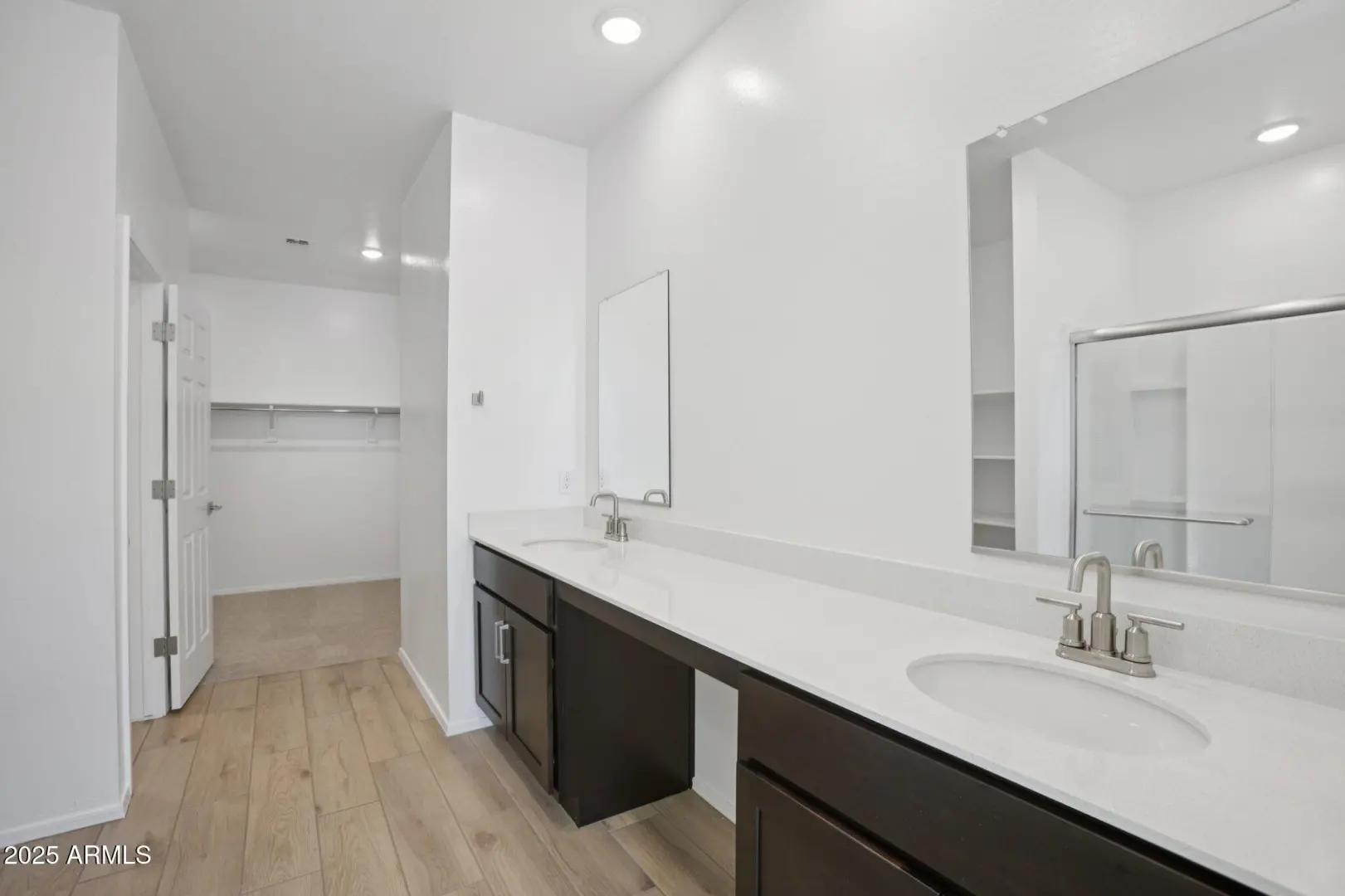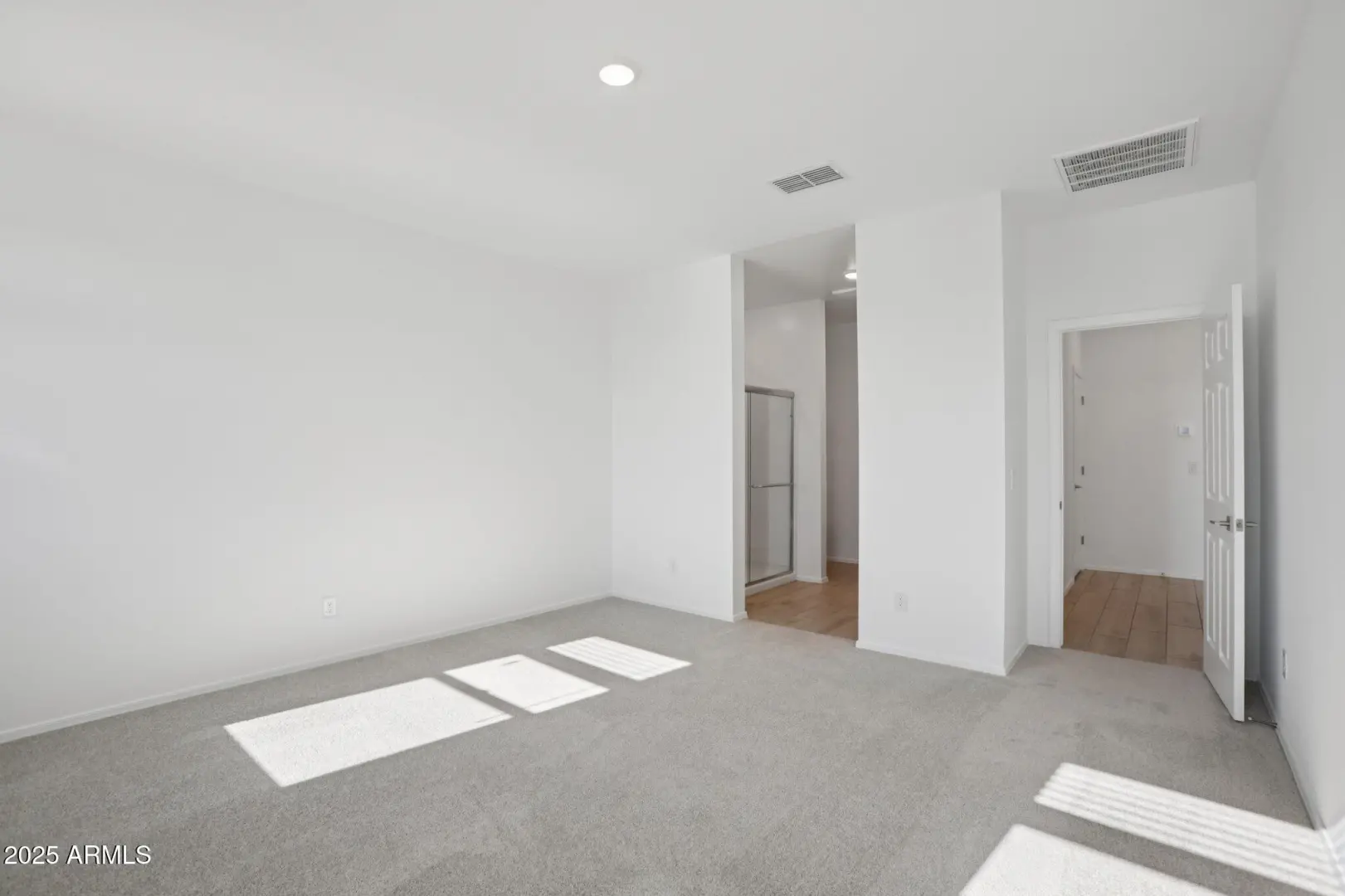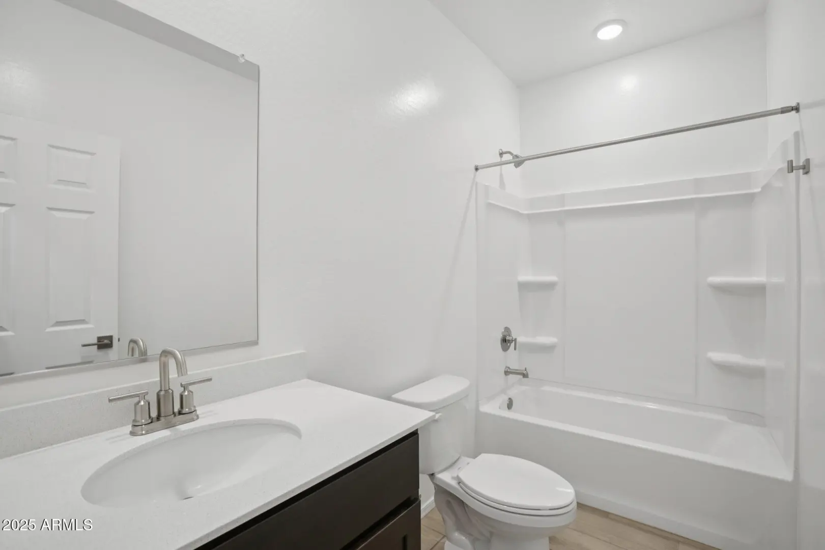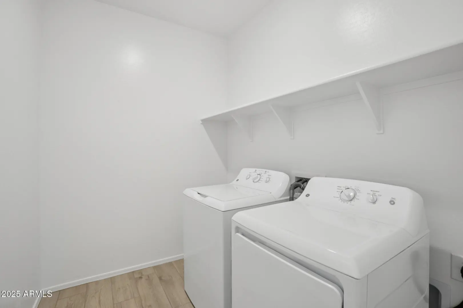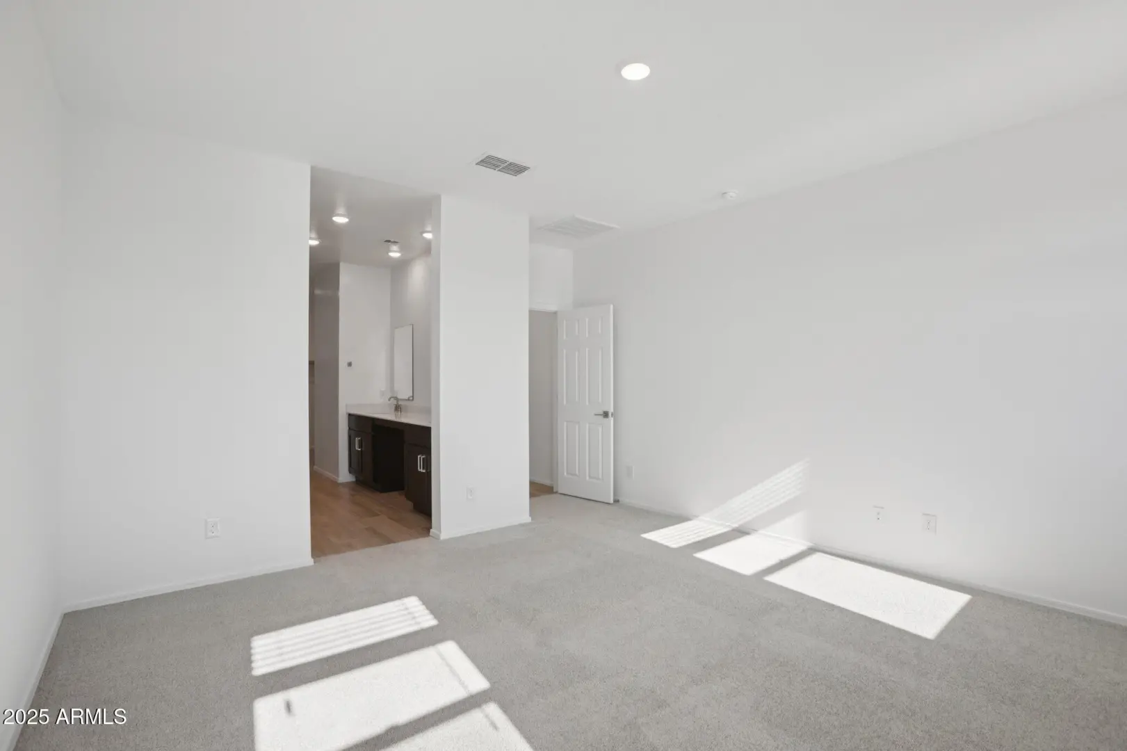Step into refined living with this brand-new 1,953 sq. ft. residence, thoughtfully designed to blend modern style with everyday comfort. Offering 3 spacious bedrooms, 2.5 baths, and a versatile den perfect for a home office or flex space, this home embodies both functionality and elegance. The Roosevelt floor plan showcases elevated finishes throughout, including 42'' espresso cabinetry, a designer tile backsplash, and an oversized quartz island that anchors the kitchen. Stainless steel appliances, along with the refrigerator, washer, and dryer, are all included for effortless move-in convenience. Soaring 9-foot ceilings and an open-concept layout create an airy, inviting atmosphere, complemented by 8x36 wood-look tile that brings warmth and continuity through the main living