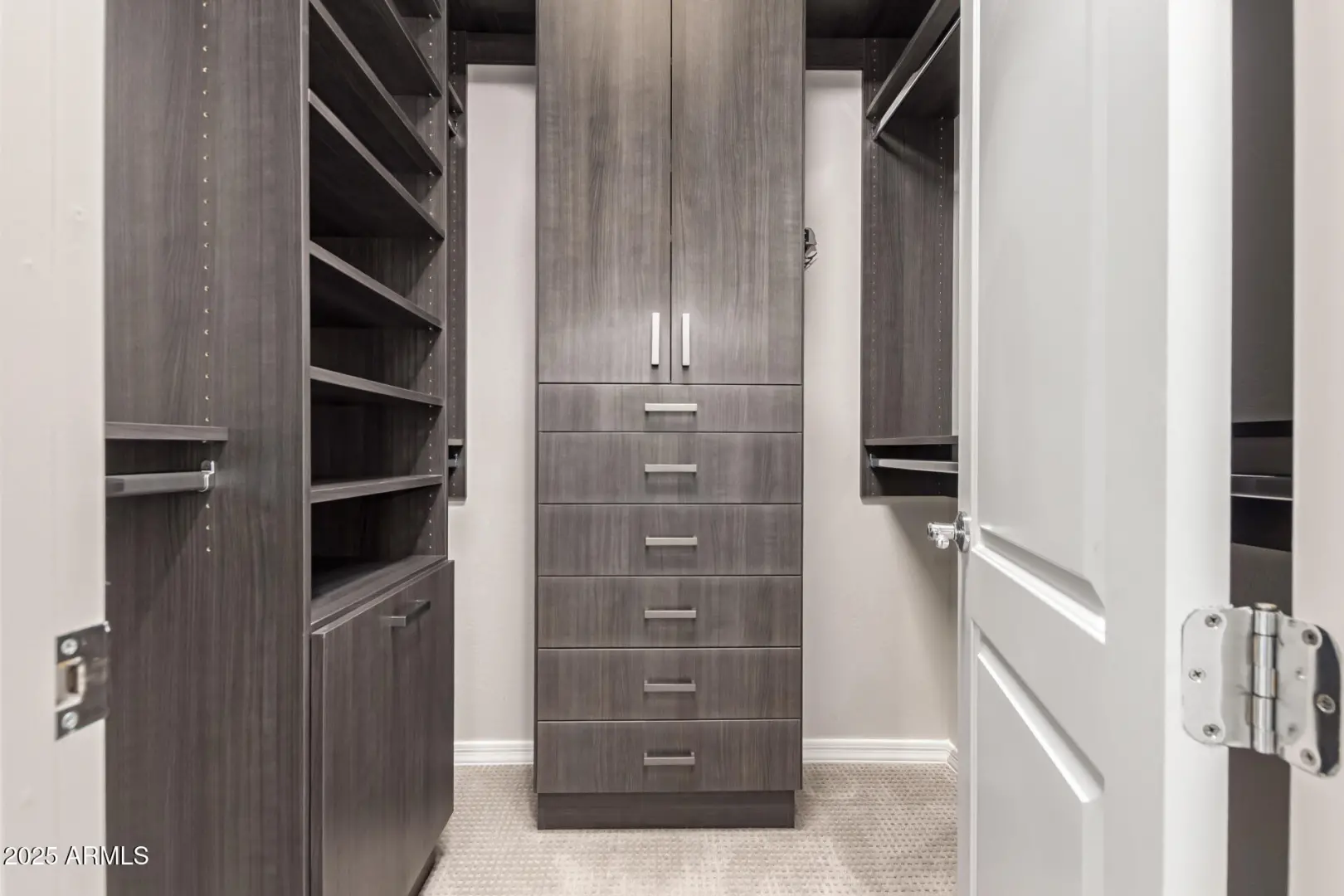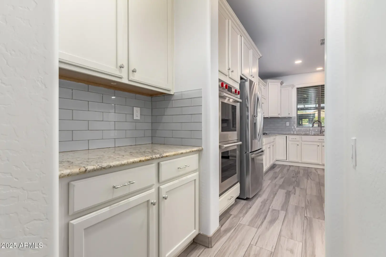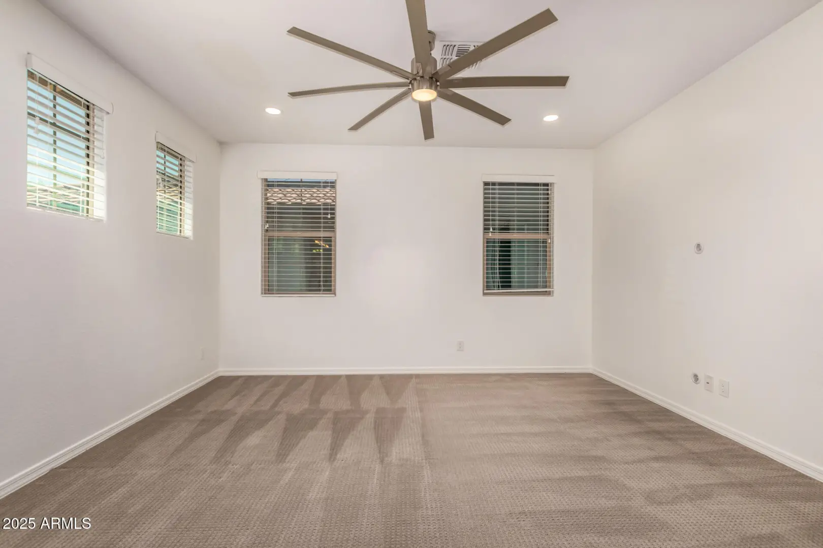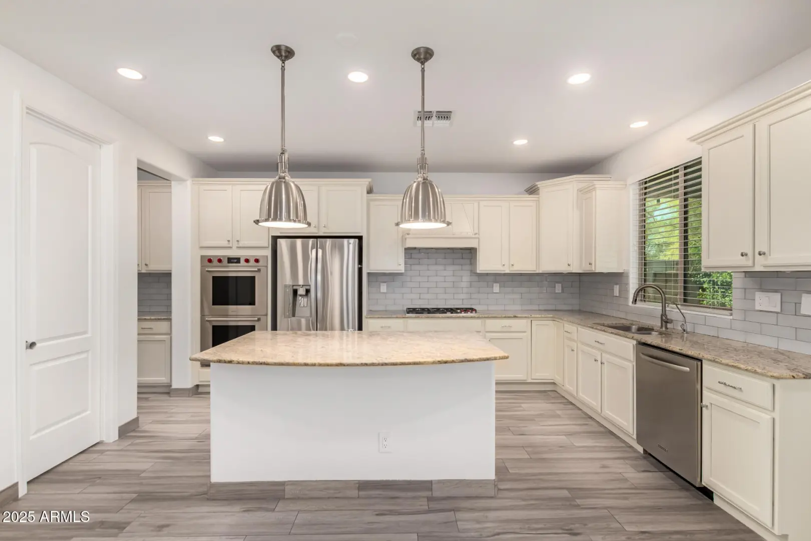 Stunning home in the highly sought-after Fireside at Desert Ridge community! Nestled on a premium cul-de-sac lot with no neighbor behind, this residence backs to open space for added privacy and views. A private courtyard welcomes you inside to a thoughtfully designed floor plan. The main level features a chef's kitchen with Wolf appliances, white cabinetry, and granite countertops, opening to the great room with fireplace and backyard views. Additional highlights include a dedicated office and a spacious 3-car garage with built-in cabinets and fresh epoxy flooring. Upstairs offers three spacious bedrooms, loft, and a convenient laundry room. The large primary suite features a spa-like bath and dual walk-in closets with custom cabinetry. The backyard is easy to maintain with turf and