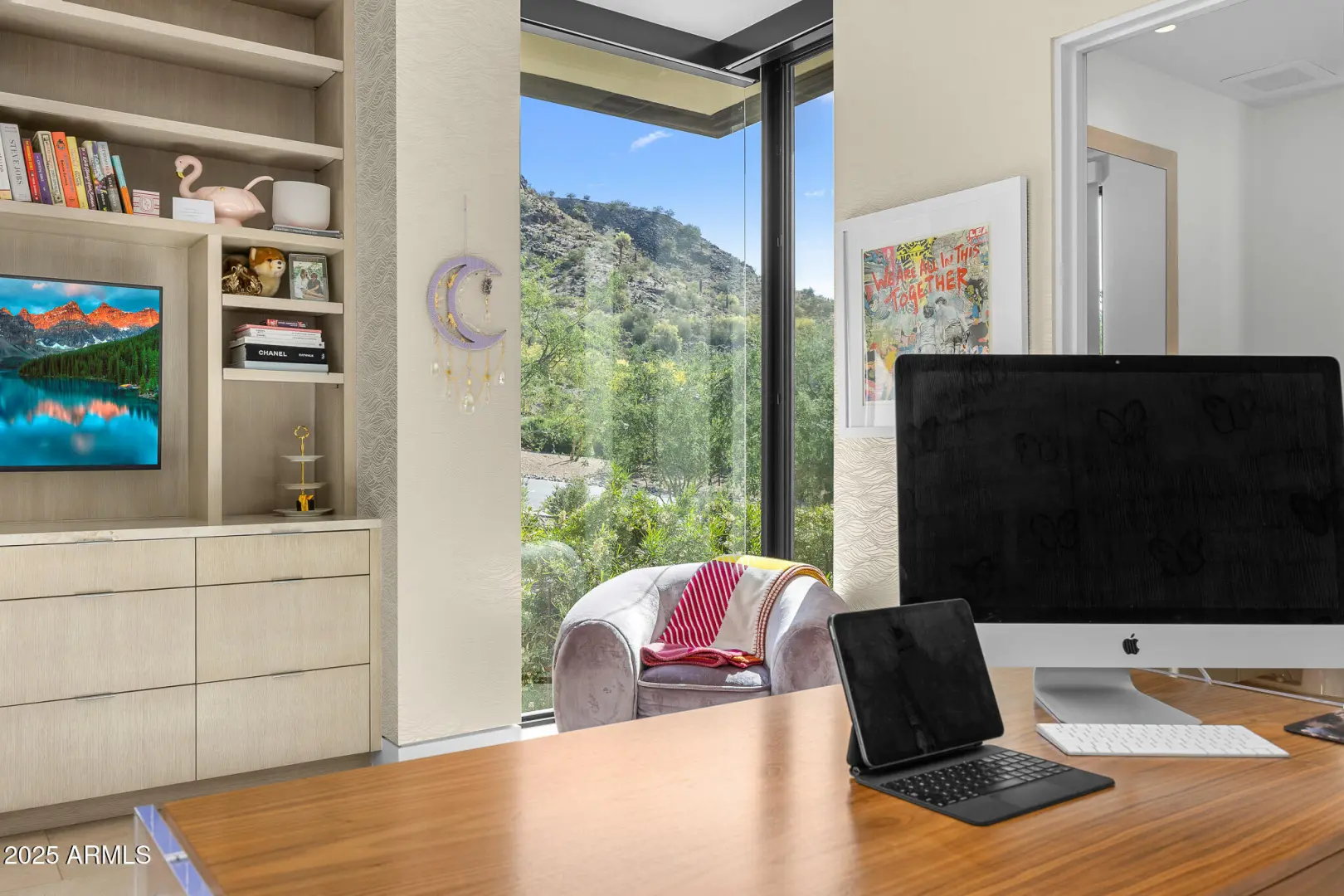 Without a doubt, this is the most breathtaking home currently on the market in Paradise Valley. A true masterpiece by Drewett Works, this home is a perfect blend of sleek, modern design and unparalleled luxury. From the moment you step inside, the stunning views of Camelback and Mummy Mountain will take your breath away. Floor-to-ceiling disappearing windows seamlessly merge indoor and outdoor spaces, making this home an entertainer's dream. The residence features 4 spacious en-suite bedrooms, an office, a den, a gym, a bonus area (which could easily serve as a 5th bedroom), and a gourmet kitchen complete with a large island, custom cabinetry, and a wine cellar—perfect for any culinary enthusiast. The oversized great room flows effortlessly, making every gathering feel expansive and