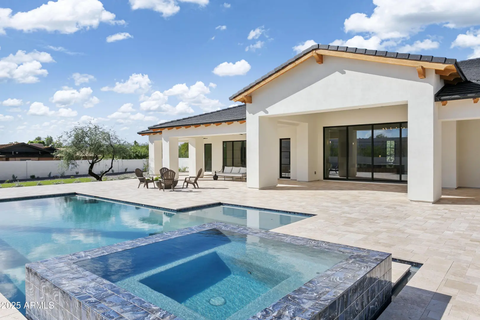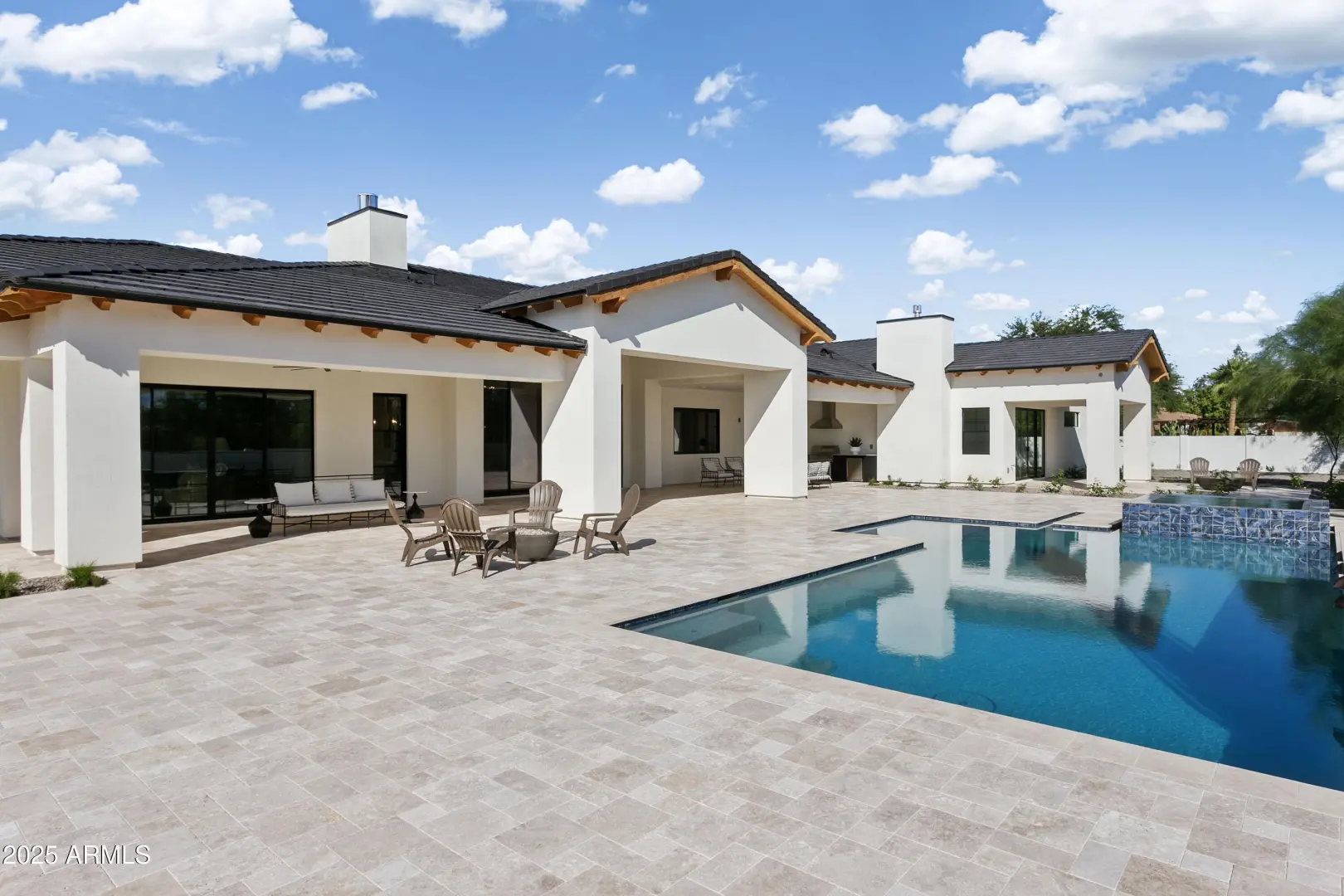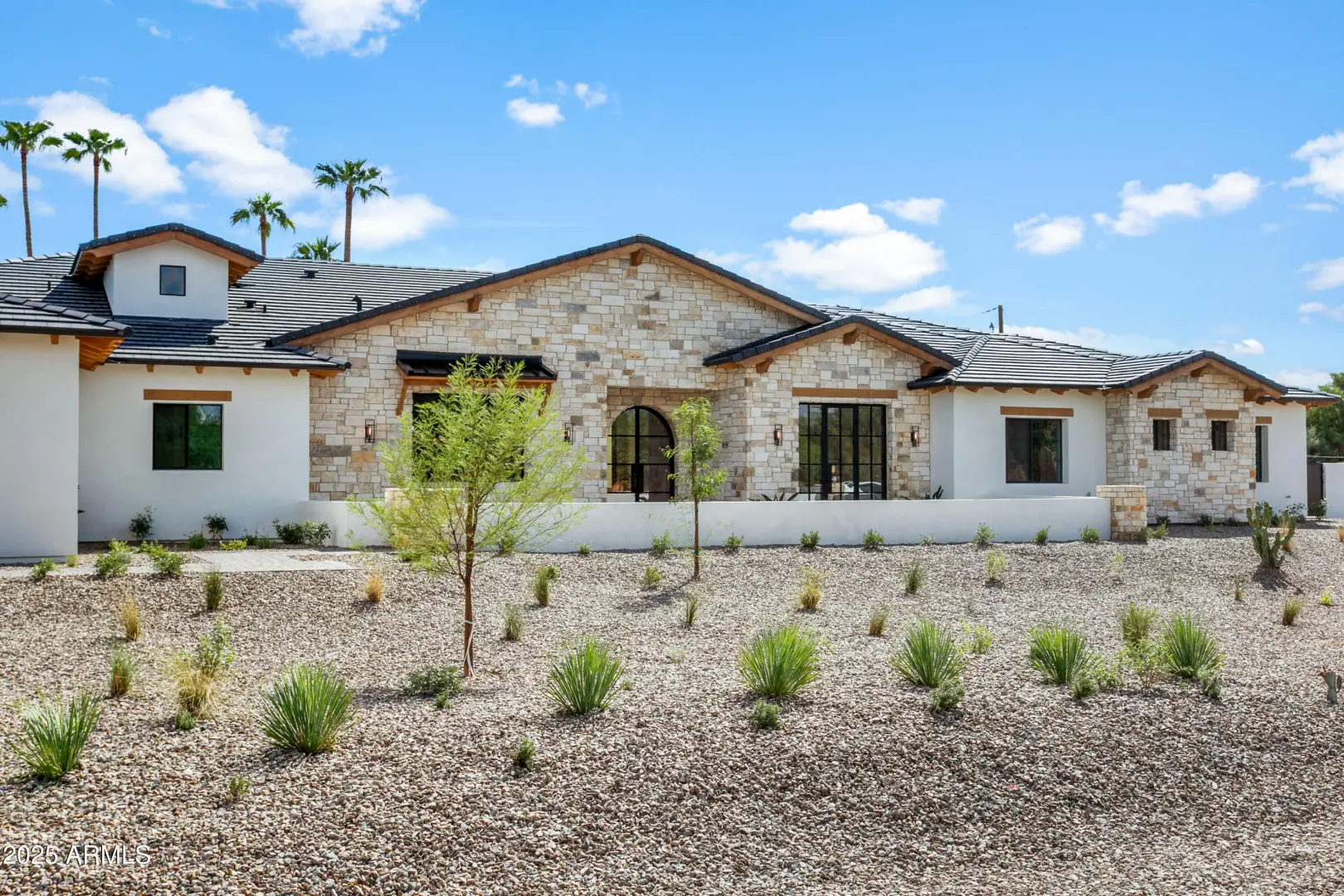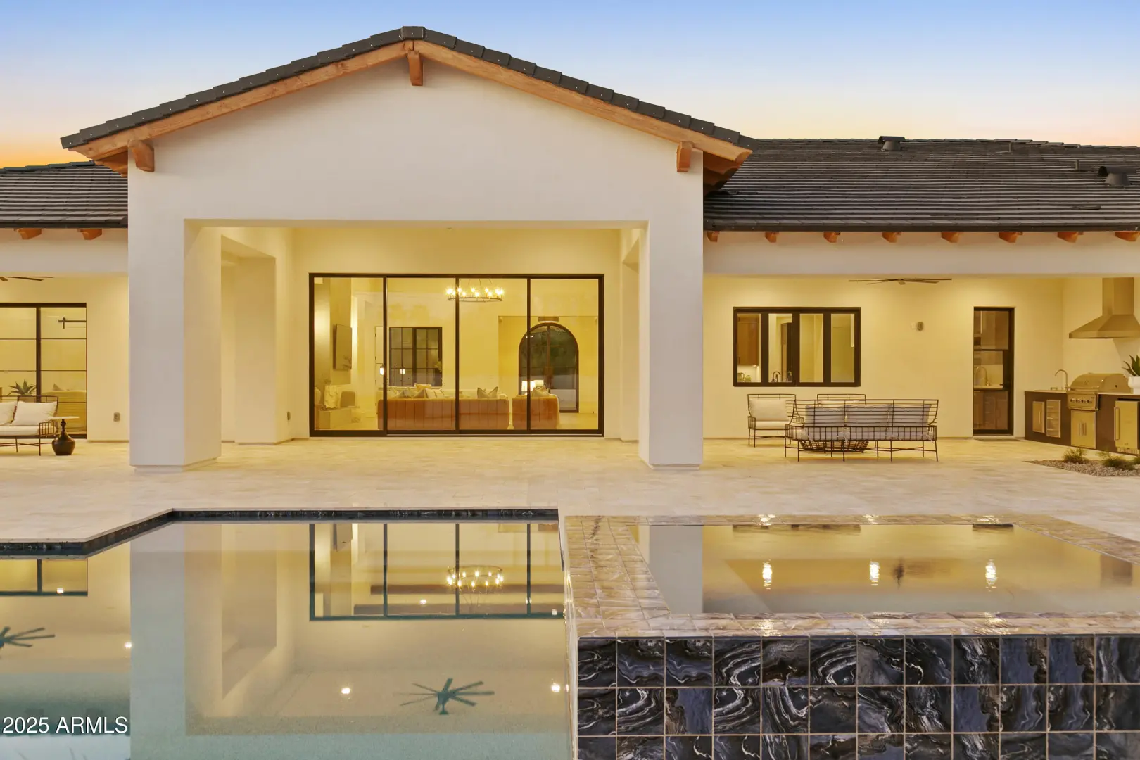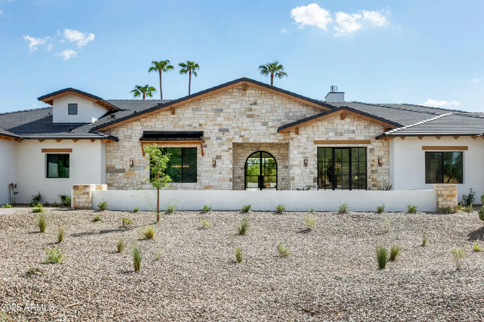 Traditional and modern collide in the newest luxury residence built by Richter Homes. Located on a full acre lot in a prime Scottsdale location, this home boasts 6,000sf with 5 beds, 5.5 baths, plus a game room. Thoughtfully designed layout and bespoke finishes - phenomenal space for hosting and comfortable living. Great room features 14' ceilings, modern fireplace, and retractable doors leading to the pool. Chef's kitchen with 60'' Wolf range, integrated Subzero fridge/freezer, flat panel rift oak cabinets, and accordion passthrough window to the outdoor kitchen. Luxurious primary suite with a fireplace, steam shower, custom closet and hidden safe room. Large secondary bedrooms, including a junior master suite. Game room features a full wet bar and bathroom that connects to the outside.