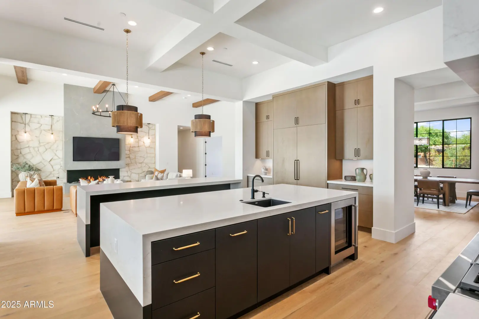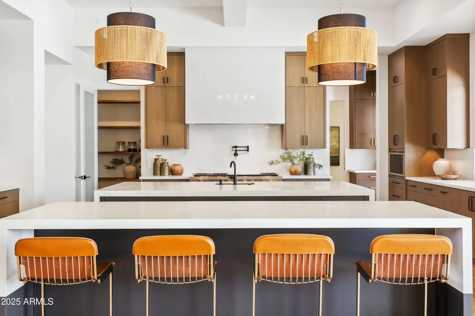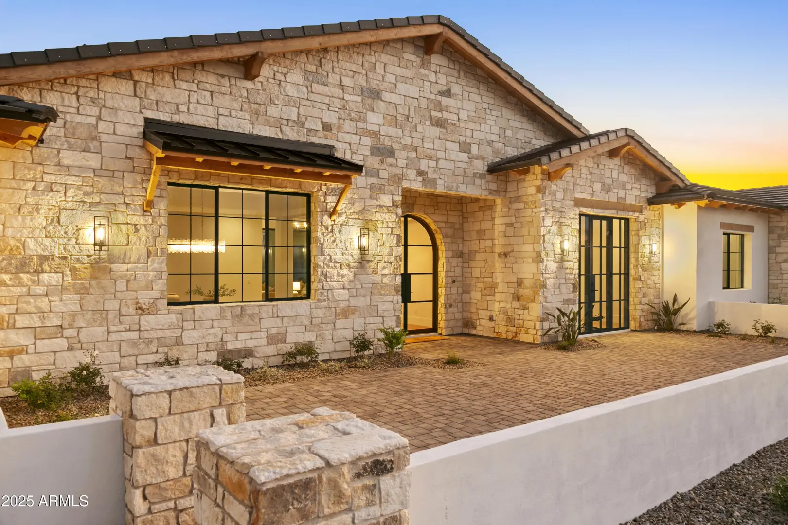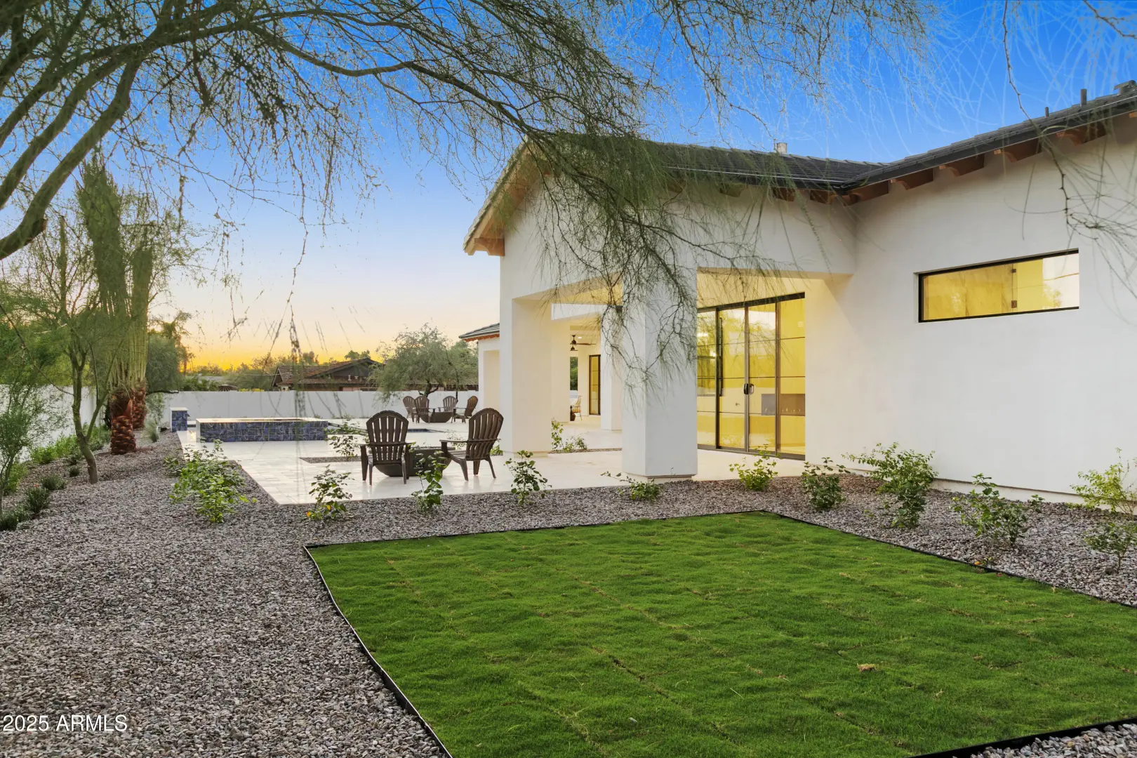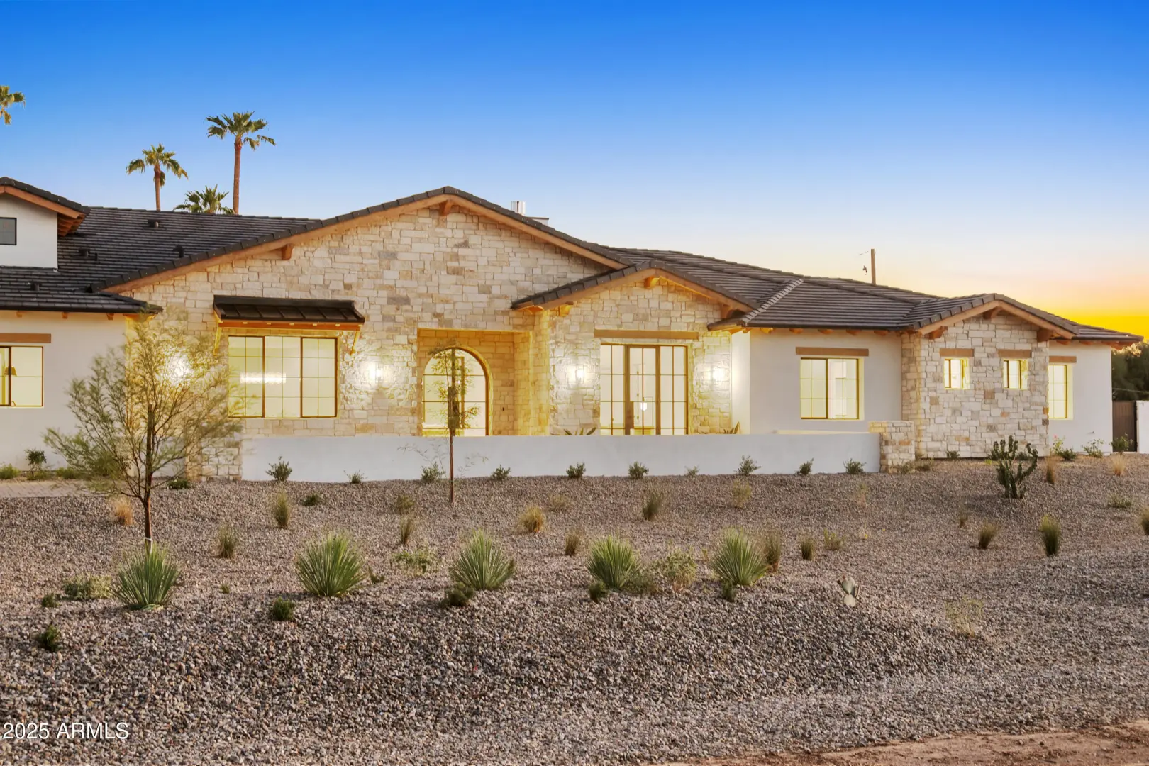 Traditional and modern collide in the newest luxury residence built by Richter Homes. Located on a full acre lot in a prime Scottsdale location, this home boasts 6,000sf with 5 beds, 5.5 baths, plus a game room. Thoughtfully designed layout and bespoke finishes - phenomenal space for hosting and comfortable living. Great room features 14' ceilings, modern fireplace, and retractable doors leading to the pool. Chef's kitchen with 60'' Wolf range, integrated Subzero fridge/freezer, flat panel rift oak cabinets, and accordion passthrough window to the outdoor kitchen. Luxurious primary suite with a fireplace, steam shower, custom closet and hidden safe room. Large secondary bedrooms, including a junior master suite. Game room features a full wet bar and bathroom that connects to the outside.